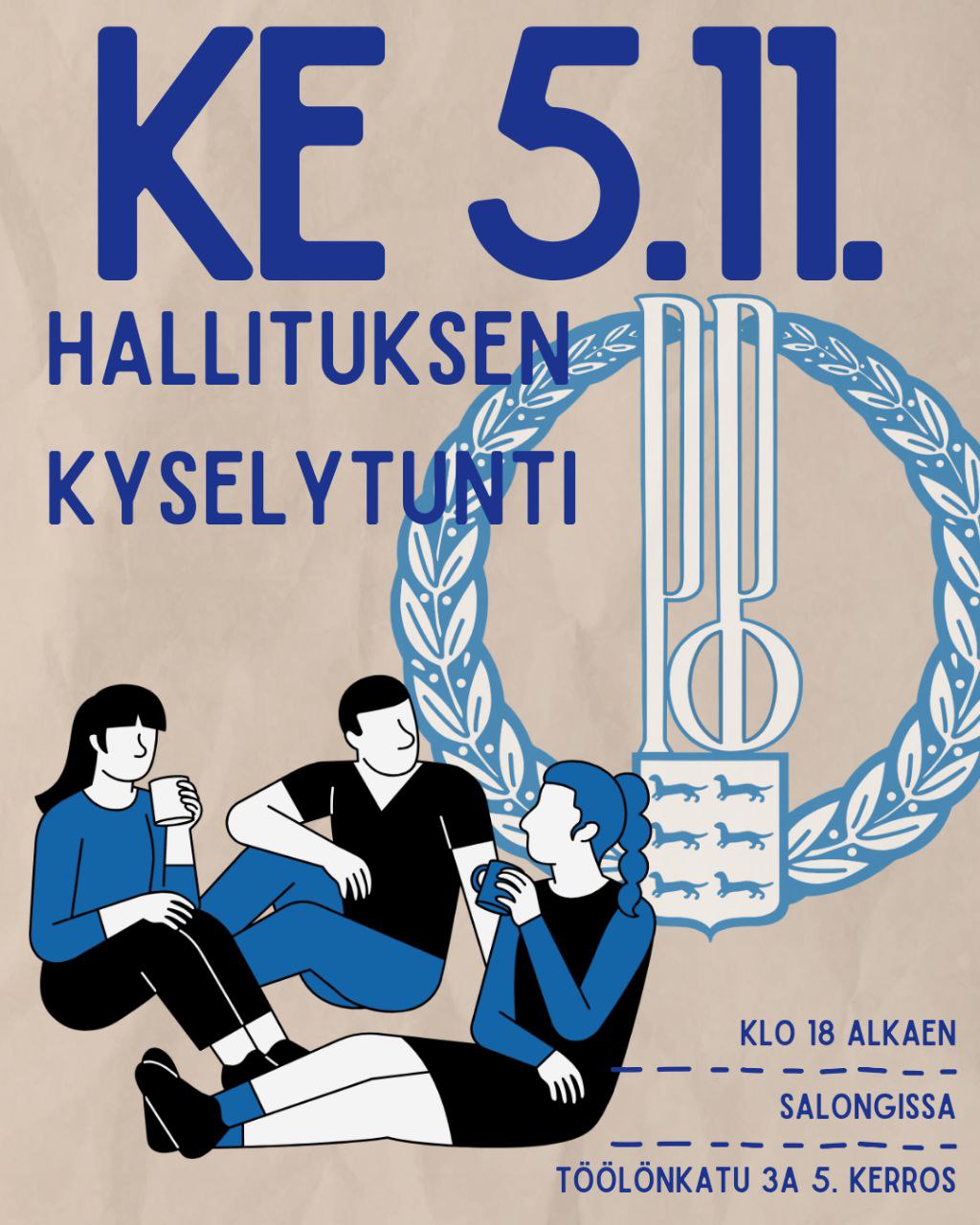 Tervetuloa ensi keskiviikkona 5.11. klo 18 alkaen salonkiin rentoon illanviettoon hallituslaisten kanssa. Pääset tutustumaan matalalla kynnyksellä PPO:n hallitukseen sekä esittämään kaikkia mahdollisia kysymyksiä osakunnan toiminnasta.